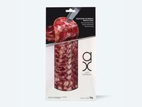 Dégustez un Saucisson de Bellota Ibérique, issu de porcs 100 % ibériques, coupé en fines tranches et présenté dans un format pratique prêt à consommer en petites portions, qui conserve tout son arôme et sa saveur.