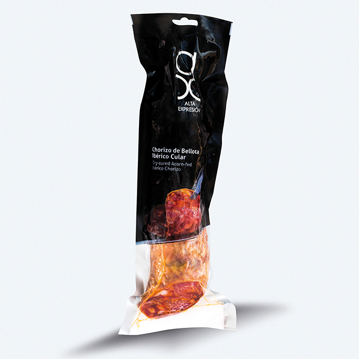 El Chorizo de Bellota Ibérico cular Alta Expresión es uno de los sabores más asombrosos. Elaborado a partir de carne magra de cerdo de primera calidad y curado en tripa cular, este producto ibérico le sorprenderá por su sabor y aroma únicos en el mundo.